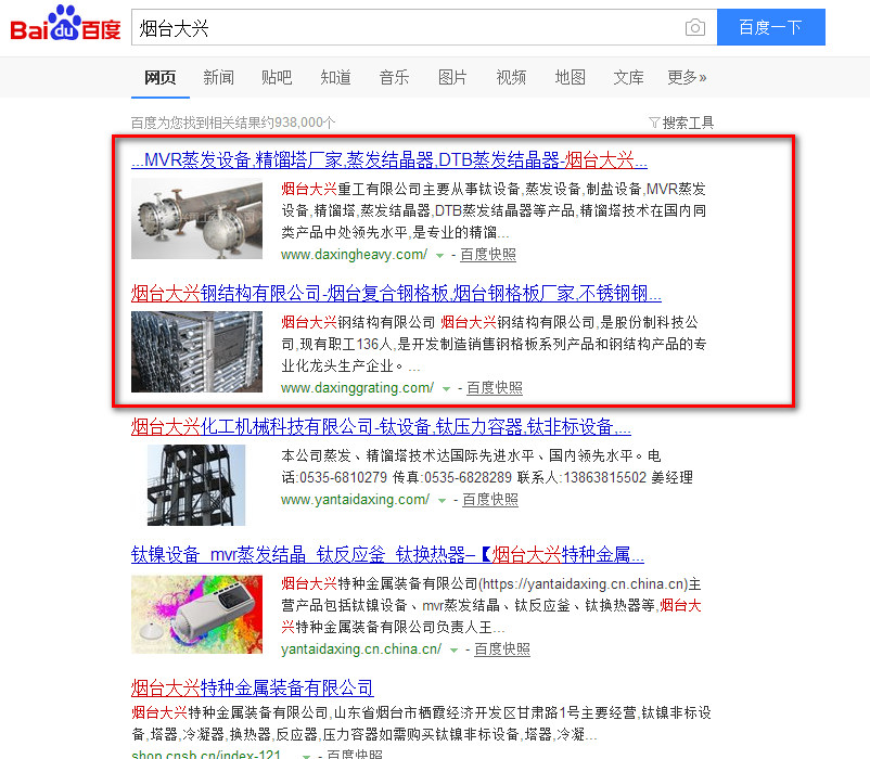烟台大兴重工老板王总,非常重视公司名“烟台大兴”的排效果,王总得知两个网站的烟台大兴关键词全部做到首页,非常满意我们做的效果!烟台智联网络科技有限公司以“高端标准、严格管理、强抓服务、狠整效果”的经营理念,专心致力于为客户做出更满意的效果。接下来小编带您了解下烟台大兴网站效果。